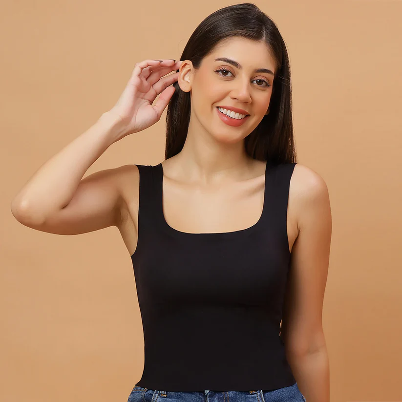 Be the first to review “Seamless Padded Bra Top with Broad Straps & U-Neckline – Black” Cancel reply